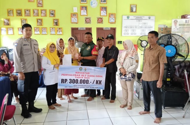 INFOMUARAENIM.COM – Babinsa Koramil 404-04/Gunung Megang, Sertu Yopan Suralaga PA, melaksanakan monitoring kegiatan penyaluran Bantuan Langsung Tunai Dana Desa (BLT-DD) Tahap 3 Tahun Anggaran 2025 sekaligus kegiatan titik nol pembangunan jalan setapak di Dusun 2 dan Dusun 4 Desa Kuripan Selatan, Kecamatan Empat Petulai Dangku, Kabupaten Muara Enim, Selasa (26/08/2025).