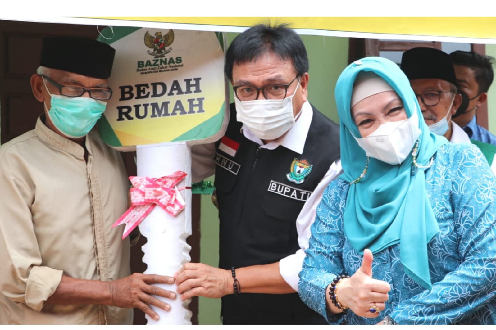 INFOMUARAENIM – Mat Denu warga Dusun IV, Desa Kencana Mulia, Kecamatan Rambang, Kabupaten Muara Enim, Pj. Bupati Muara Enim, Dr. H. Nasrun Umar, S.H., M.M., menyerahkan kunci bedah rumah program Badan Amil Zakat (Baznas) Muara Enim. Dalam sambutannya Pj. Bupati mengatakan pemberian bantuan bedah rumah ini demi mendukung tercapainya masyarakat yang sejahtera, menciptakan rumah yang layak huni bagi masyarakat di Kabupaten Muara Enim. (05/10/2021)