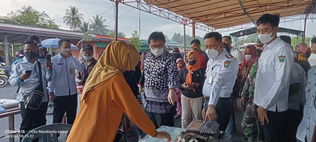 Usai meninjau Pasar Ramadhan di Terminal Bantingan, Pj. Bupati dan rombongan langsung menuju pasar tumpah yang ada di Alun-alun Karang Asam Kelurahan Tanjung Enin Selatan.