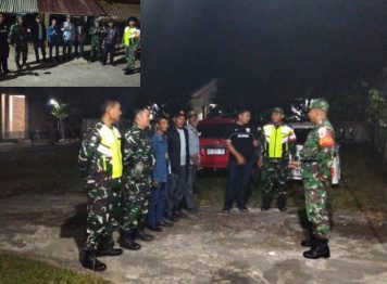 Ciptakan Rasa Aman di Wilayah Binaan Anggota Koramil 404-04/Gunung Megang Gelar Patroli Malam