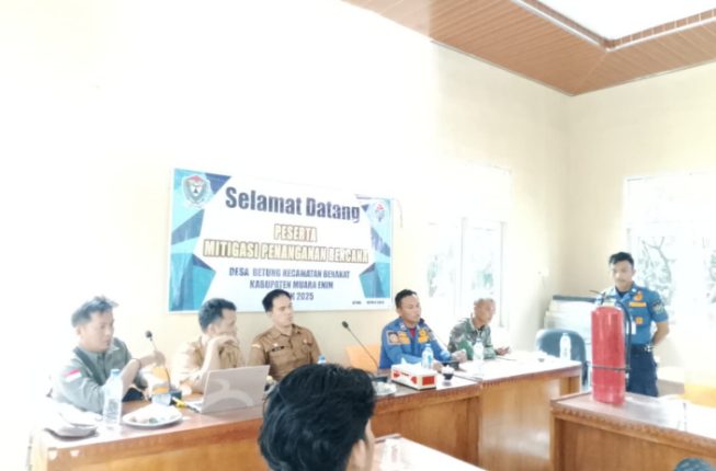 INFOMUARAENIM.COM — Dalam rangka meningkatkan kesiapsiagaan masyarakat terhadap potensi bencana, Danramil 404-04/Gunung Megang turut berpartisipasi dalam kegiatan Pelatihan Desa Mitigasi Penanganan Bencana yang dilaksanakan di Desa Betung, Kecamatan Benakat, Kabupaten Muara Enim, pada Selasa, 30 Desember 2025, pukul 13.00 WIB hingga selesai.