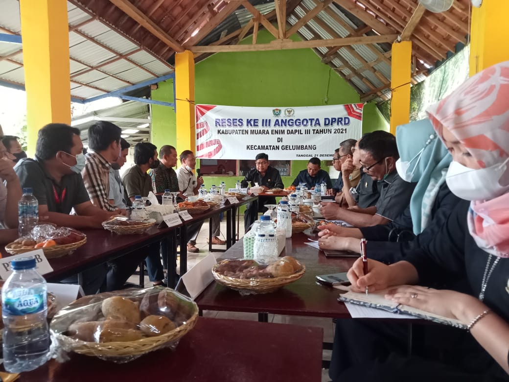 Reses Ke III Anggota DPRD Dapil 3 Kabupaten Muara Enim Sumatera Selatan pada Selasa (21/12) berlangsung di Kecamatan Gelumbang yang langsung dipimpin oleh Wakil Ketua DPRD Muara Enim Hadiono,SH, serta dihadiri para anggota DPRD Dapil III Muara Enim yaitu Nino Ardian,SH, Rani Kodim,SH, Mukarto, SH, Izroni Elias,SPd, Ponira,SH,SKM, dan Meta Apriana.