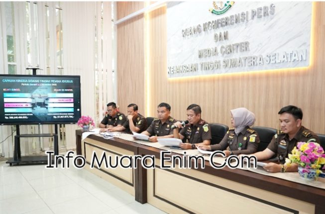 INFOMUARAENIM.COM – Kejaksaan Tinggi (Kejati) Sumatera Selatan dalam memperingati Hari Anti Korupsi Sedunia (HAKORDA) Tahun 2025, secara resmi merilis capaian kinerja bidang Pidana khusus (Pidsus) Kejati Sumsel, pada Selasa (09/12/2025).
