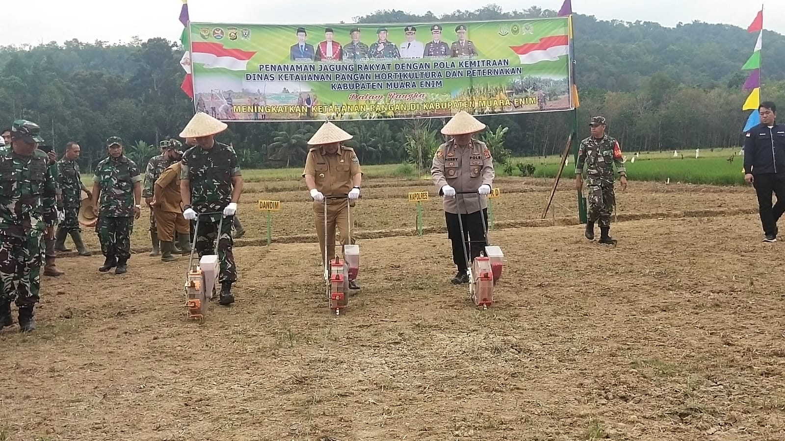 Senada apa yang diucapkan Dandim 0404 Muara Enim Letkol Arh Rimba Anwar, S.I.P.,M.I.P didampingi oleh Danramil 404-5 Tanjung Enim Kapt. Czi Sujarwo mengucapkan terimakasih kepada Bapak Pj. Bupati Muara Enim yang telah menyempatkan hadir dalam acara Penanaman Jagung Rakyat.