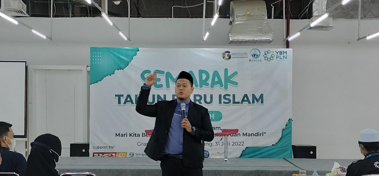 PALEMBANG-INFOMUARAENIM – Hari Ahad (31/7/2022), Gencar, YBN PLN dan Gramedia World Palembang menggelar acara Talkshow Semarak Menyambut Tahun Baru Islam 1444 Hijriyah dengan menghadirkan Motivator Nasional sekaligus Da’i Muda Kondang yakni Ustadz Reno Anugerah Pratama, S.Sos., S.Pd., C.Ps di Aula Gramedia World Palembang.