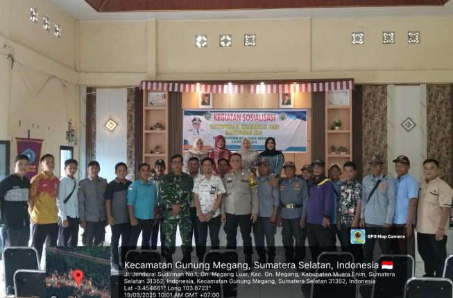 INFOMUARAENIM.COM – Pada hari Jumat, 19 September 2025 sekira pukul 09.00 WIB bertempat di Aula Kecamatan Gunung Megang, telah dilaksanakan kegiatan sosialisasi ketertiban, keindahan, dan keamanan.