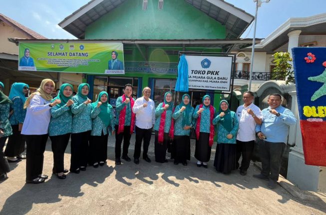 INFOMUARAENIM.COM– Tim Penggerak PKK Desa Muara Gula Baru, Kecamatan Ujanmas, Kabupaten Muara Enim, meresmikan Toko PKK Desa Muara Gula Baru pada Rabu (27/08/2025). Peresmian ini dilakukan langsung oleh Hj. Lidyawati Cik Ujang(Staf Ahli Provinsi Sumatera Selatan), yang juga hadir bersama Tim Monitoring dan Evaluasi (Monev) Pilot Project Galeri Pelangi Sumsel.