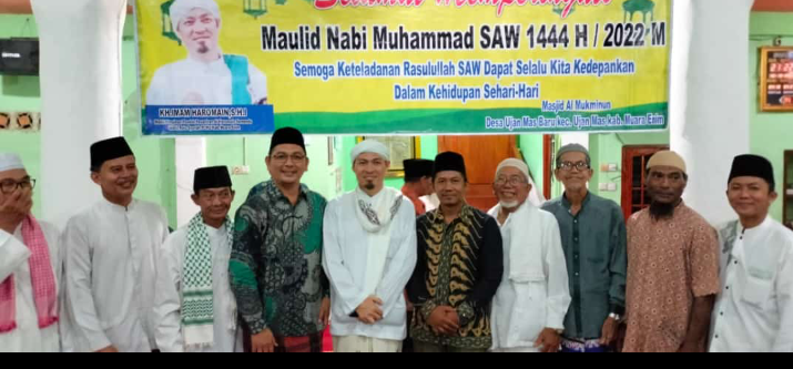 Bertempat di Masjid Al – Mukminun di Dusun 03 Desa Ujanmas Baru kecamatan Ujanmas kabupaten Muara Enim dilaksanakan peringatan Maulid Nabi Muhammad SAW 1444 H yang dihadiri oleh Anggota DPRD Septi Agsiadi, Kepada Desa Ujanmas Baru Samsir,Tokoh Agama, Tokoh Masyarakat,Kadus 03 Ujanmas Baru serta para undangan dan masyarakat, yang di laksanakan pada Minggu 16/10/22 jam 19.00 wib.