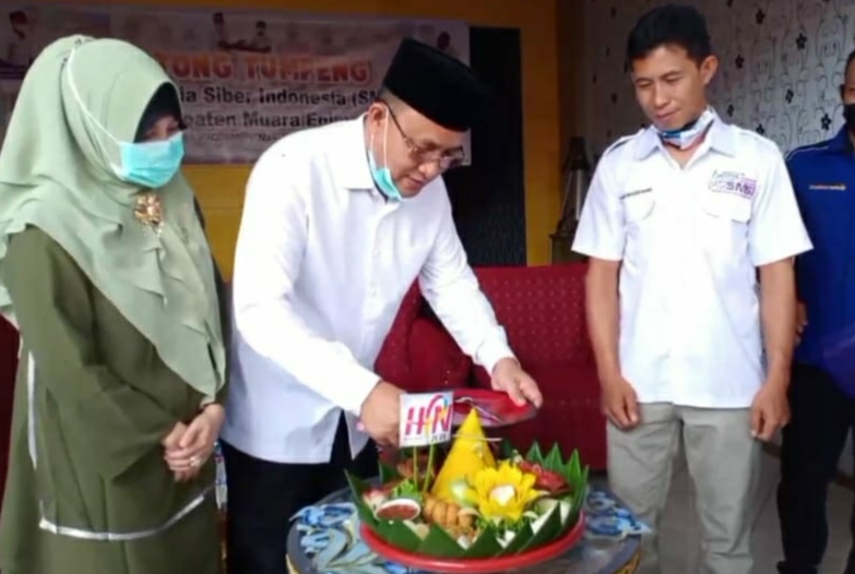 INFOMUARAENIM.COM – Guna memperingati dan meriahkan Hari Pers Nasional (HPN) ke 75 tahun 2021 jajaran Pengurus Serikat Media Siber Indonesia (SMSI) Kabupaten Muara Enim pada Jum’at (12/02/21) menggelar kegiatan Potong Tumpeng dan Anjangsana ke pondok pesantren (Ponpes).