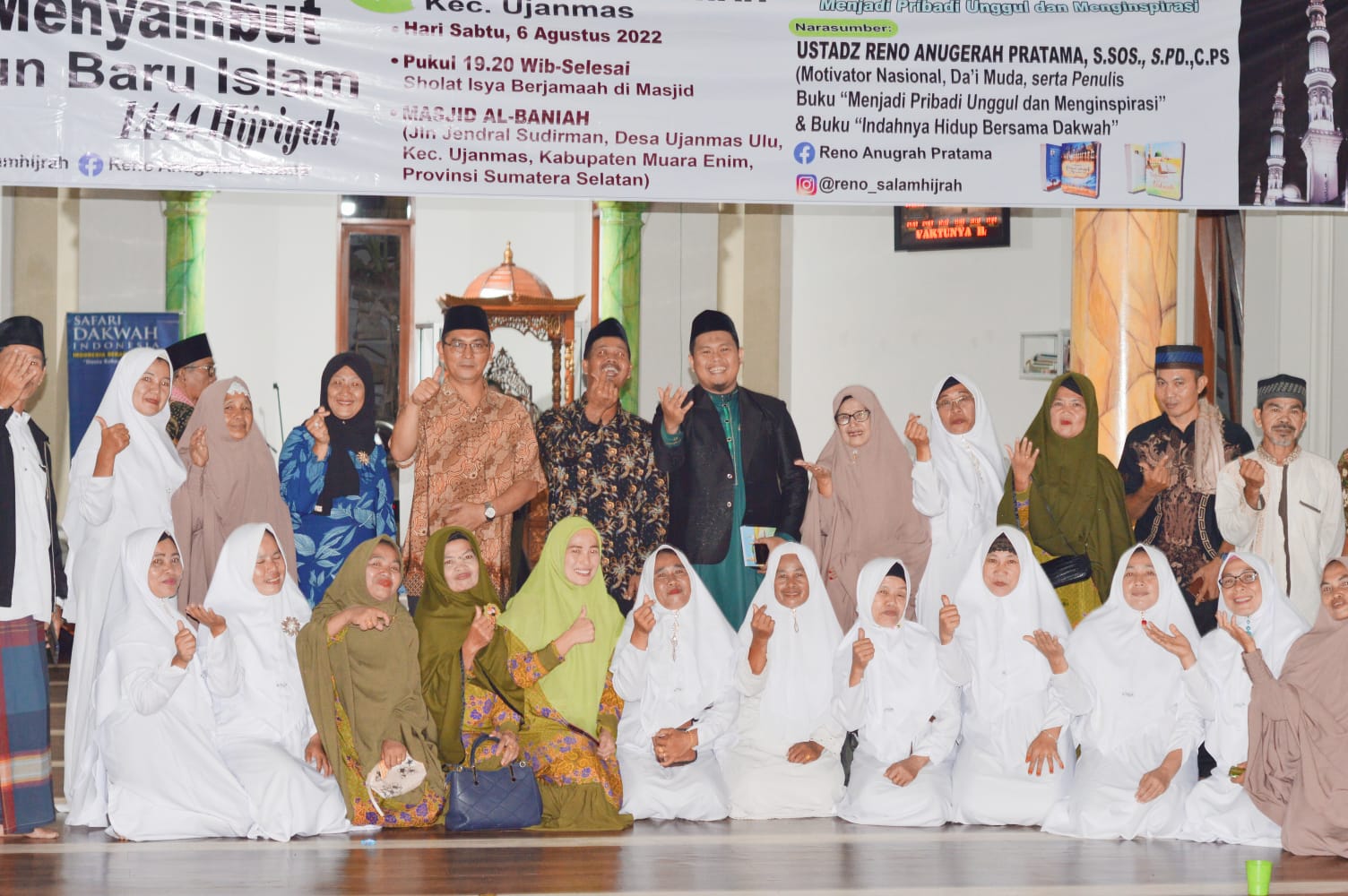 MUARA ENIM-INFOMUARAENIM.COM – Hari Sabtu (6/8/2022), Dewan Kemakmuran Masjid Al-Baniah Ujanmas menghadirkan Motivator Nasional dan Da’i Muda Kondang yakni Ustadz Reno Anugerah Pratama, S.Sos., S.Pd., C.Ps sebagai Penceramah dalam Tabligh Akbar Menyambut Tahun Baru Islam 1444 H. Tabligh Akbar dengan mengusung tema: Menyambut tahun baru Islam dengan semangat menjadi pribadi unggul dan menginspirasi.