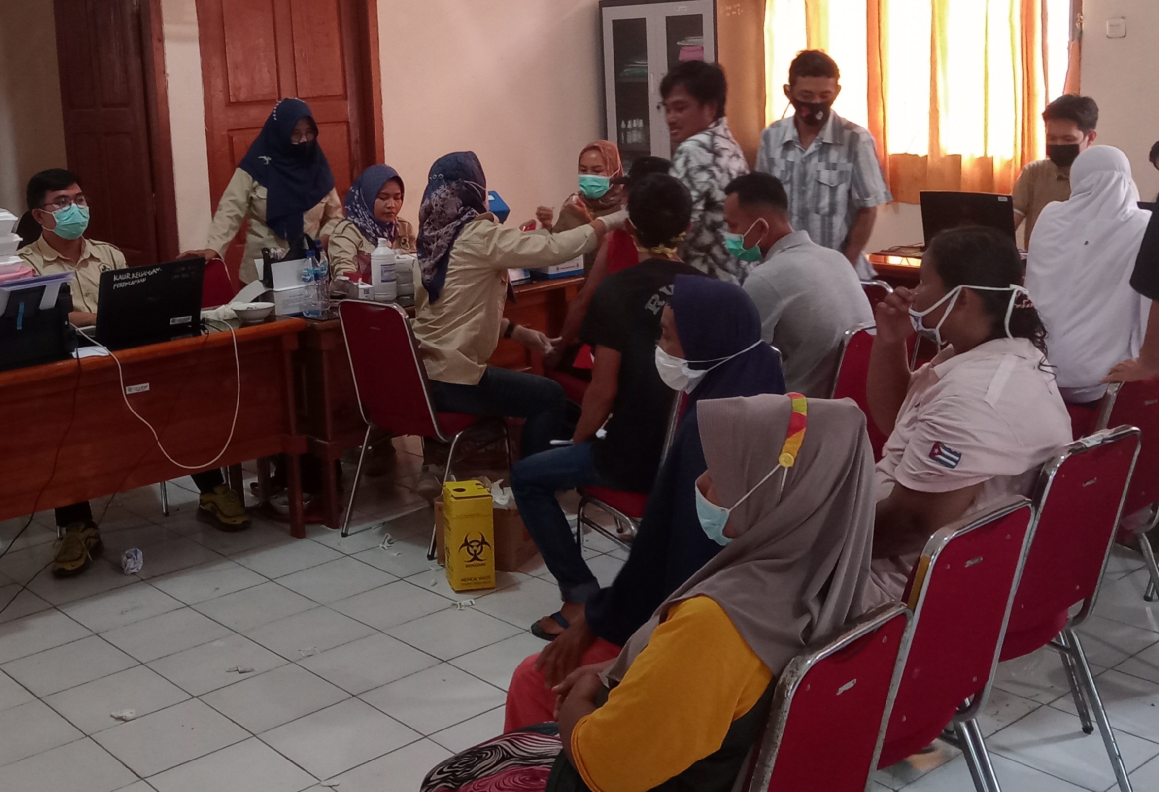 INFOMUARAENIM.COM – Pemerintah Desa (Pemdes) Guci Kecamatan ujan mas melaksanakan kegiatan vaksinasi covid – 19 ke 1 dan 2 di kantor desa, Senin pagi (1/11), dalam acara vaksinasi tersebut di ikuti oleh warga setempat, di kawal oleh Babinsa dan babinkamtibmas.