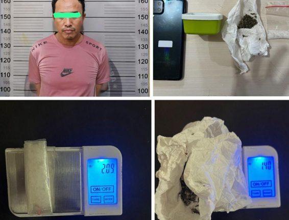 Selanjutnya, petugas menyita seluruh barang bukti berupa satu paket sabu dengan berat bruto 2,09 gram, satu paket ganja kering dengan berat bruto 1,40 gram, satu wadah kotak warna hitam, satu lembar plastik klip transparan, satu batang pipet ujung runcing, serta satu unit telepon genggam Samsung Galaxy M32 yang diduga digunakan untuk komunikasi transaksi.