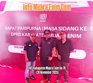 INFOMUARAENIM.COM – Memenuhi undangan Rapat Paripurna I Masa Sidang Ke-1 DPRD Kabupaten Muara Enim dalam rangka memperingati hari jadi Kabupaten Muara Enim Ke-79 (20 November 1946-20 November 2025) Ketua DPC Asosiasi Wartawan Profesional Indonesia (AWPI) Muara Enim Riswan, didampingi Sekjen DPC AWPI Muara Enim Herdiansyah (Tabur) serta para anggota DPC AWPI Kabupaten Muara Enim, mengucapakan selamat hari jadi Kabupaten Muara Enim Ke-79 Semoga Kabupaten Muara Enim akan terus lebih maju lagi menuju masa depan yang lebih baik lagi, juga dengan sesuai Motto Kabupaten Muara Enim Yakni “Dengan Semangat Hari Jadi Kabupaten Muara Enim Ke-79 Kita Wujudkan Muara Enim Bangkit Sejahtera Maju dan Berkelanjutan (MEMBARA).