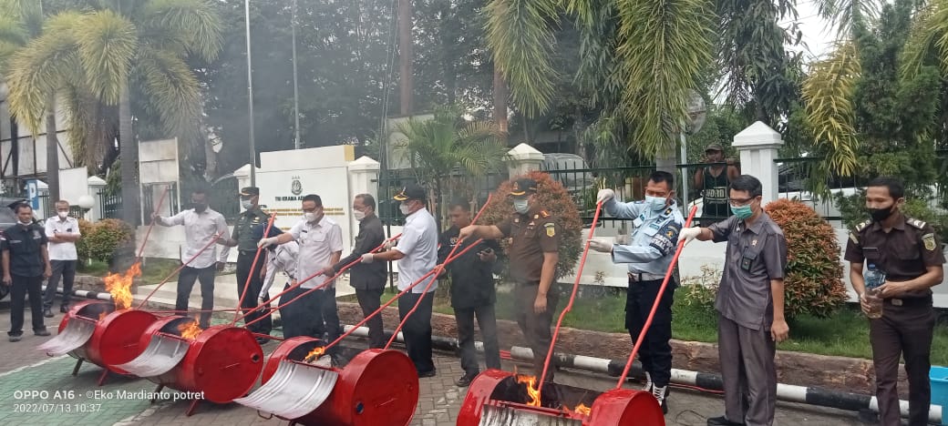 Adapun Kegiatan pemusnahan barang bukti telah berkekuatan hukum tetap terdiri narkotika jenis ganja, sabu-sabu dan ekstasi. Selain itu ada pula senjata api, senjata tajam dan perkara lainnya memusnahkan barang bukti mayoritas narkotika senilai Rp300 juta.