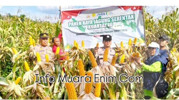 INFOMUARAENIM.COM – Polsek Gelumbang Polres Muara Enim kembali menunjukkan dukungannya terhadap ketahanan pangan nasional melalui pelaksanaan panen jagung Kuartal III yang berlangsung pada Jumat, 14 November 2025. Kegiatan yang dimulai pukul 14.00 WIB ini digelar di lahan masyarakat milik Sugi dan rekan yang berlokasi di Desa Karang Endah, Kecamatan Gelumbang, Kabupaten Muara Enim. Panen ini merupakan bagian dari program berkelanjutan Polres Muara Enim dalam membantu masyarakat meningkatkan produktivitas sektor pertanian.