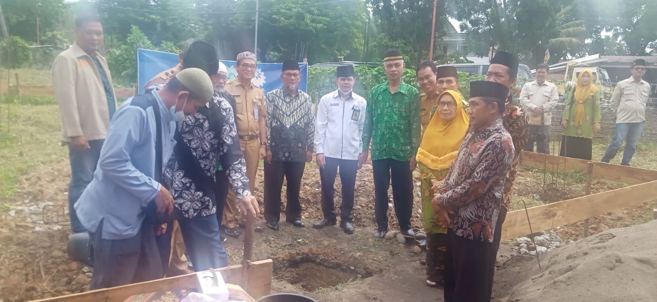 Peletakan batu pertama itu dilakukan secara simbolis oleh perwakilan Pimpinan Wilayah Muhammadiyah Provinsi Sumsel H Novrizal Nawawi LC MPdI.