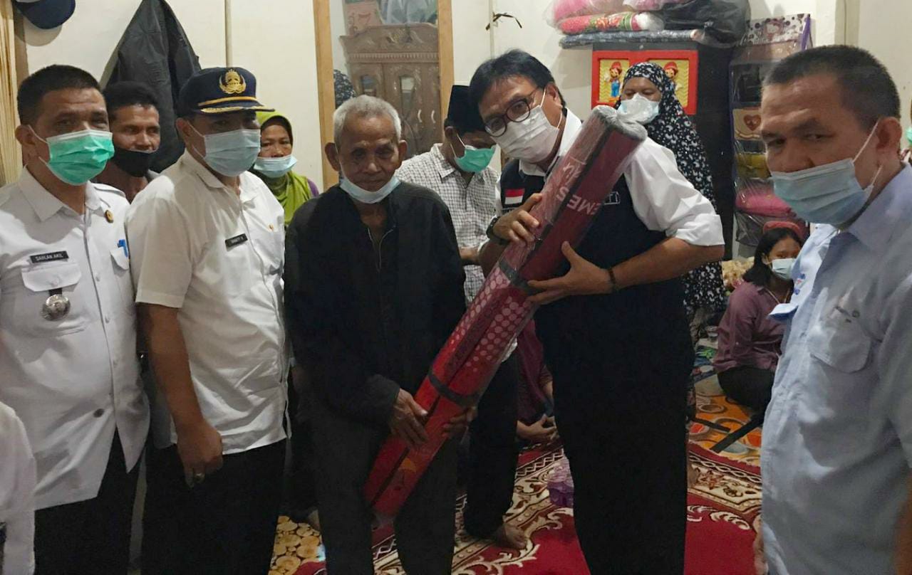 Didampingi isteri, Reny Nasrun Umar, Kepala Dinas Sosial Muara Enim Bhakti, Camat Tanjung Agung Sahlan, dan Spesialis Bina Lingkungan CSR PTBA Erwandi, sejumlah bantuan logistik dari Pemkab Muara Enim dan PTBA diserahkan langsung oleh Pj. Bupati kepada para korban kebakaran.