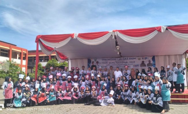 INFOMUARAENIM.COM – Sekolah Menengah Kejuruan Negeri (SMKN) 1 Muara Enim memperingati Hari Guru Nasional tahun 2025 yang bertema ”Guru hebat Indonesian kuat” yang digelar selama 2 hari berturut-turut dari hari senin-selasa tanggal 24-25 Nopember 2025.