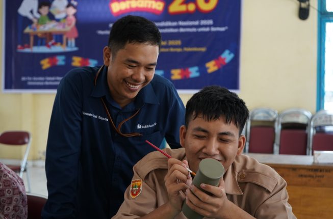 INFOMUARAENIM.COM – Dalam rangka menyemarakkan Hari Pendidikan Nasional 2025 dengan tema “Partisipasi Semesta Wujudkan Pendidikan Bermutu untuk Semua”, PT Bukit Asam Tbk (PTBA) melalui Tim Human Capital Operations dan Tim Sustainability, bersama dengan unit Kertapati Port, sukses menyelenggarakan kegiatan bertajuk “Ukir Cita Bersama 2.0”. Program ini merupakan kegiatan kelas inspirasi dan fokus pada kegiatan melukis bersama siswa-siswi SLB B Negeri Pembina di Palembang.