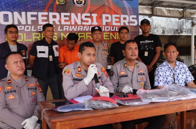 Dalam konferensi pers yang digelar di halaman Mapolsek Lawang Kidul pada Jumat (5/9/2025) kemarin, Kasi Humas Polres Muara Enim, AKP RTM Situmorang mewakili Kapolres Muara Enim AKBP Jhoni Eka Putra, SH, SIK, MSi. Hadir pula Kapolsek Lawang Kidul IPTU Andaru Galuh Indratno, S.Tr.K, Waka Polsek Lawang Kidul Ipda Edi Susanto, Kanit Reskrim Ipda Noky Juliawan, SH serta jajaran personel Polsek Lawang Kidul.